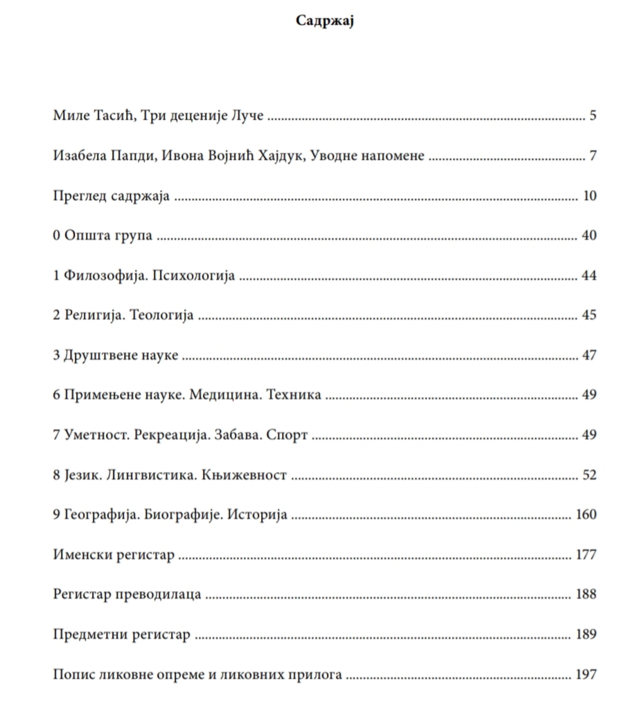 Библиографија пред нама обухвата период од јануара 2012. закључно са јануаром 2021. године, урађена је на стручан начин, прилагођена савременим библиографским тенденцијама, истовремено приступачна за коришћење било ком читаоцу те ваља похвалити ауторке Изабелу Папди и Ивону Војнић Хајдук, за несебичан труд при изради ове стручне енциклопедијске публикације.
